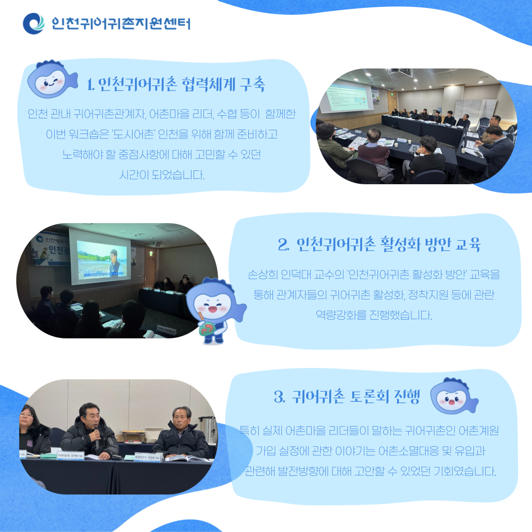 '24년 12월 20일 진행된 인천귀어귀촌거버넌스 워크숍 카드뉴스입니다. |